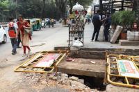Drainage work has been delayed and causing problems to the walkers at Sampige Road, Malleshwaram, in Bengaluru on Thursday 21st November 2019