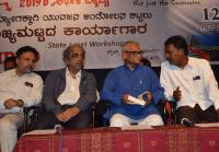 | Event Details: | Comrade Ramanjanappa Aldalli, President AIDYO with Comrade K Radhakrishna, President AIUTUC, Prof Ravi Varma Kumar, Former Advocate General of Karnataka, M Umadevi, President Karnataka State Committee AIDYO inaugurated the youth workshop on Economic Crises of 2019 “Bail Out Youth, Just not the Corporates” at Scouts and Guides Hall, organised by AIDYO, in Bengaluru on Thursday 12th December 2019 |