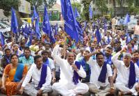 Members of Dalita Sangarsha Samiti staged a protest at Yavanika to press their various demands, in Bengaluru on Tuesday 17th December 2019