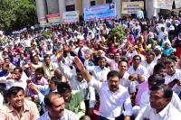 Unaided teachers from various districts staged a protest and demanding for pension schemes at Town Hall, in Bengaluru on Friday 10th January 2020