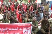 Members of Auto Rickshaw Drivers Union staged a protest to fulfill their various demands at Freedom Park, in Bengaluru on Saturday 29th February 2020