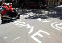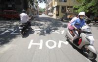 Stay Home awareness writing on road to avoid people roaming outside during the nationwide lock down imposed on the wake of Coronavirus pandemic, in Bengaluru on Wednesday 1st April 2020
