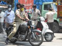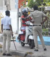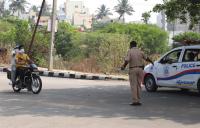 Police check post at Ullal Main Road during the nationwide lockdown in the wake of novel coronavirus (COVID 19) pandemic, in Bengaluru on Thursday 9th April 2020