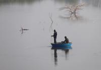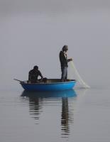 Fishermen cast their nets at Sulikere lake during the nationwide lockdown in the wake of novel coronavirus (COVID 19) pandemic, in Bengaluru on Saturday 11th April 2020