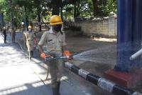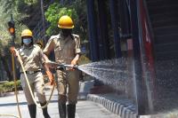 Firemen Spray Disinfectants to Contain Coronavirus