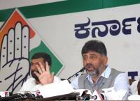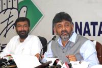 Designated KPCC President DK Shivakumar and Working President Saleem Ahmed addressing press conference at KPCC office, in Bengaluru on Saturday 18th April 2020