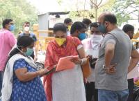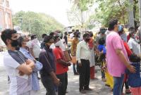 People standing in the queue at Upparpet Police Station to apply for the pass to travel freely in the city during coronavirus lockdown, in Bengaluru on Thursday 30th April 2020