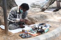 Cobbler at Housing Board seen in action during the nationwide lockdown in the wake of novel coronavirus (COVID 19) pandemic, in Bengaluru on Wednesday 6th May 2020