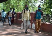 Stranded migrant workers seen near Bengaluru City Railway Station during the nationwide lockdown in the wake of novel coronavirus (COVID 19) pandemic, in Bengaluru on Saturday 9th May 2020