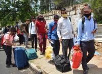 Stranded people of Himachal Pradesh seen at Palace Grounds for registration and wait to board buses to a special train for native homes during the coronavirus lockdown, in Bengaluru on Monday 11th May 2020