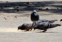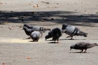 Pigeons eating food grains at a roadside, amid ongoing coronavirus lockdown, in Bengaluru on Wednesday 20th May 2020