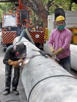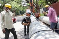 BWSSB pipeline work progress near Jawaharlal Nehru Planetarium, amid ongoing Coronavirus lockdown, in Bengaluru on Saturday 30th May 2020