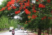 Gulmohar Flower blooming at Bengaluru University campus attracts the people, amid ongoing Coronavirus lockdown, in Bengaluru on Saturday 30th May 2020