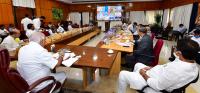 CM BS Yediyurappa interacts with DCs and SPs on Covid 19 through video call at home office Krishna, in Bengaluru on Tuesday 2nd June 2020