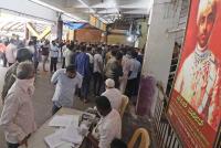 KR Market shop owners gathered at market premises to collect applications for reopening their shops during Coronavirus Lockdown, in Bengaluru on Monday 8th June 2020