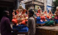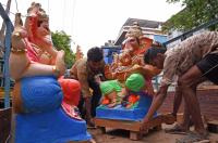 Ganesha idols made out of clay being shifted from kengeri to a shop at KR road for sales for the forth coming Ganesha Festival, in Bengaluru on Friday 12th June 2020