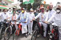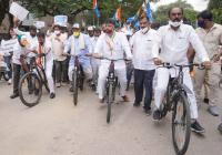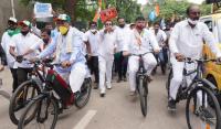 KPCC Designated President DK Shivakumar with CLP Leader Siddaramaiah and Congress leaders and workers participated in bicycle rally to protest against hike of fuel price, in Bengaluru on Monday 29th June 2020