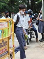 SSLC students with protective masks seen arriving at the Exam centre to appear for the SSLC exam at Malleshwarm, in Bengaluru on Wednesday 1st July 2020