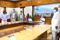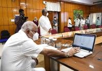 Chief Minister BS Yediyurappa launched direct cash transfers to handloom weavers under the weaving scheme at Home office Krishna, in Bengaluru on Monday 6th July 2020
