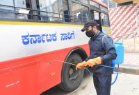 Disinfectant Sprayed at Kempegowda Bus Stand