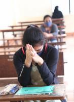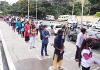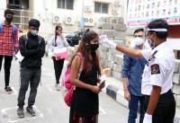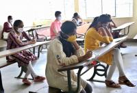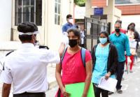 Students arrive at designated center for CET exams at SSMRV College, in Bengaluru on Thursday 30th July 2020