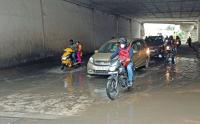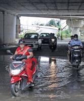 Commuters passing through rain water logged underpass at Okalipura junction, in Bengaluru on Sunday 02nd August 2020