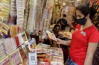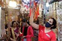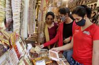 People shopping Rakhis ahead of Raksha Bandhan festival at Malleshwaram, in Bengaluru on Sunday 02nd August 2020