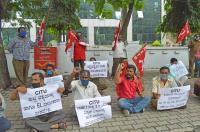 KSRTC/BMTC employees stage protest for various demands KSRTC head office, in Bengaluru on Monday 10th August 2020