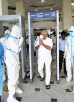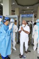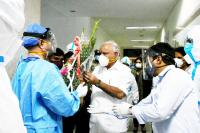 CM BS Yediyurappa, seen discharged after being treated for Covid 19, in Bengaluru on Monday 10th August 2020