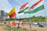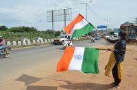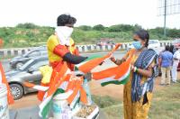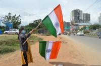 A hawker seen selling Tricolor and other Flags ahead of Independence Day, in Bengaluru on Tuesday 11th August 2020
