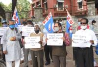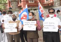 Members of Dalitha Hakkugala Samiti, Karnataka protesting against Land Reform Act Amendment and atrocity on Dalits, in Bengaluru on Thursday 13th August 2020