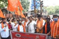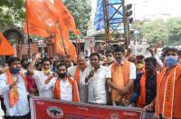 Members of Vishwahindu Parishath protesting against violence in Devara Jeevanahalli and Kadugondanahalli area, in Bengaluru on Thursday 13th August 2020