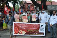 Members of CPI Party stage protest for various demands at SBM circle , in Bengaluru on Monday 17th August 2020