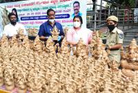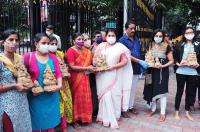 Eco-friendly Ganesha idols distributed to public by MLA Sowmya Reddy and Councillor Nagarju at Jayanagar ahead of Ganesha Chaturthi, in Bengaluru on Thursday 20th August 2020