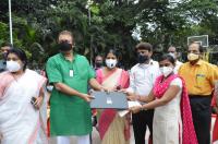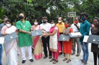 MLA Uday Garudachar MLA Sowmya Reddy Former Mayor Gangambike with others distribute Laptops and other Facilities at Jaynagar, in Bengaluru on Thursday 20th August 2020