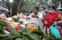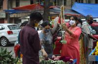 People seen shopping at Gandhi Bazaar ahead of Gowri Ganesha Festival, in Bengaluru on Thursday 20th August 2020