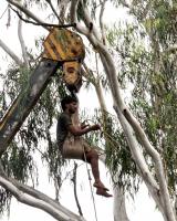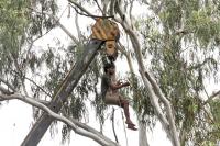 A man chopping dry tree branches by using crane at Nrupatunga Road, in Bengaluru on Friday 21st August 2020