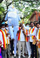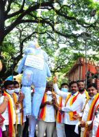 Kannada activists hanging the Hindi language effigy during their protest against Hindi language in the state, in Bengaluru on Saturday 29th August 2020
