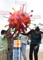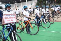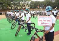 Karnataka State Reserve Police personnel participated in Bicycle Jatha Rally program to raise awareness of life saving by donating plasma in public at Ashok Nagar Grounds, in Bengaluru on Sunday 30th August 2020