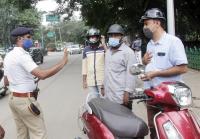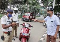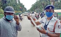 Police personnel impose fine on Traffic violators, in Bengaluru on Tuesday 1st September 2020