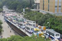 Traffic jam during the Youth Congress workers flag march “ROZGAR DO” (Give Jobs) against the central government from Mourya Circle to Congress Bhavan, in Bengaluru on Thursday 3rd September 2020