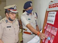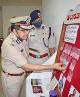 Police Commissioner Kamal Panth with police officials inspects the seized drugs worth 1.57 Crore during a press conference at CP Office, in Bengaluru on Monday 7th September 2020