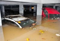 Rain water logged apartment basement parking area at Dollars Colony due to last night heavy downpour in the city, in Bengaluru on Wednesday 9th September 2020