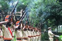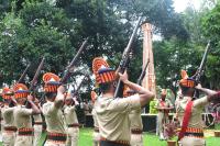 Police personnel paying tribute to the martyrs during National Forest Martyrs Day at Aranya Bhavan, in Bengaluru on Friday 11th September 2020