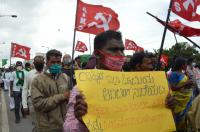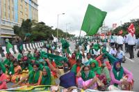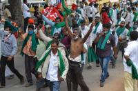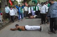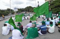 Farmers of Raitha Sangha and Sugarcane Famers Sangha stage protest against proposed Land Amendment bill and various demands, in Bengaluru on Monday 21st September 2020