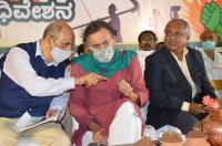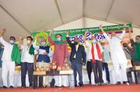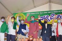 Politician Yodgendra Yadav, Prof TN Prakash Kammardi, Justice HN Nagamohan Das and farmer leaders during Ikya Horata at Freedom Park, in Bengaluru on Monday 21st September 2020