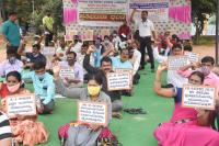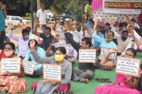 Members of Primary and High School Federation staging dharna to press their various demands at Freedom Park, in Bengaluru on Tuesday 22nd September 2020