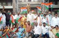 Members of Indian National Trade Union Congress protesting against Central Govt. at Congress Bhavan, in Bengaluru on Tuesday 23rd September 2020