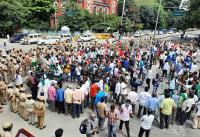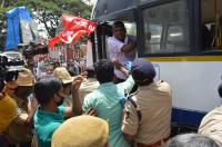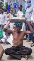 Farmers Protest continues for 5th Day against Land Reforms act and various demands at SBM Circle, in Bengaluru on Friday 25th September 2020