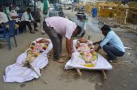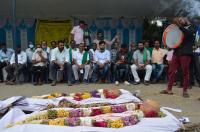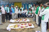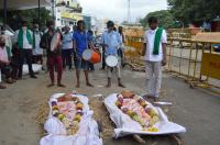 Members of Raitha Sangha and Hasiru Sene stage protest for 6th day against Land Reforms act Farmers Bill other demands at Maurya Circle, in Bengaluru on Friday 26th September 2020